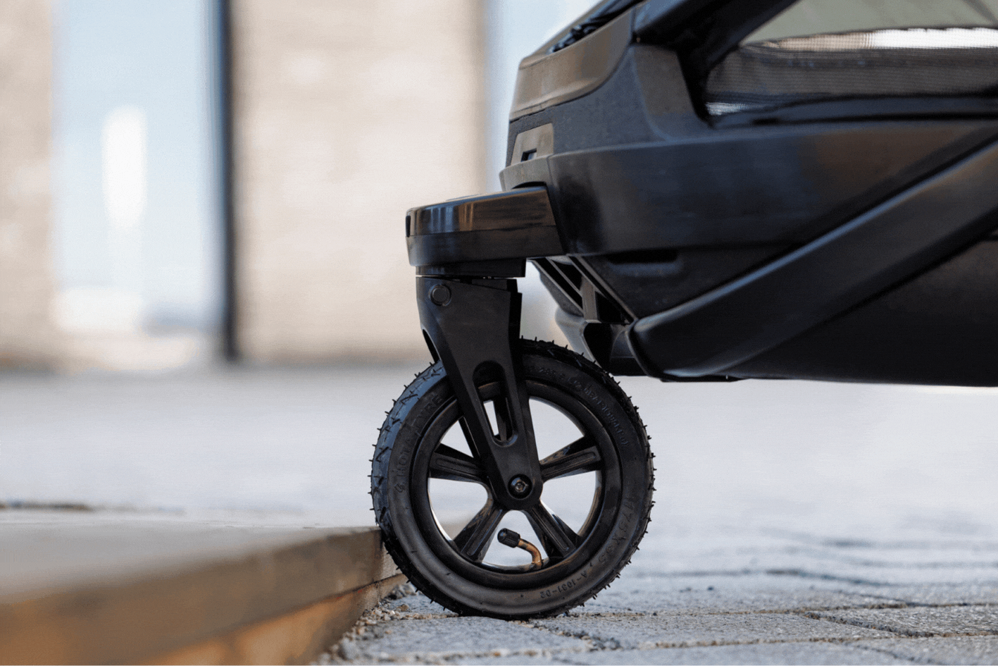 Outback Next uses a different solution where the stroller wheel can be pushed under the trailer. It also has an air-filled stroller wheel with suspension and a swivel lock, along with a solid and sealed base that protects against snow, slush and rain.